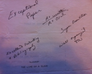 For my part, I excelled at oral reports. The subject matter was inconsequential. When Mr. Wilson employed a written assignment, followed by an oral report, as he frequently did, I rose to the occasion. I still have most of those papers with the words “Written: A+; Oral: A+” scrawled across the top. I cannot say how Mr. Wilson’s style moved other students, and I am sure there were some for whom the idea of an oral report sparked trans-corporeal hives, but it instilled in me great confidence in my ability to communicate ideas.