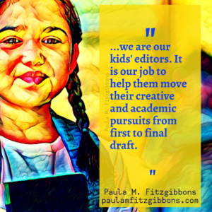 Basically, we are our kids’ editors. It is our job to help them move their creative and academic pursuits from first to final draft. In fact, I tend to think this offers our children more freedom to be creative. If my kids know that I will help them evaluate the mechanics of a story or monologue or violin piece after they’ve put in some initial work, they are free to let their imaginations run wild during the creative part of the process.***